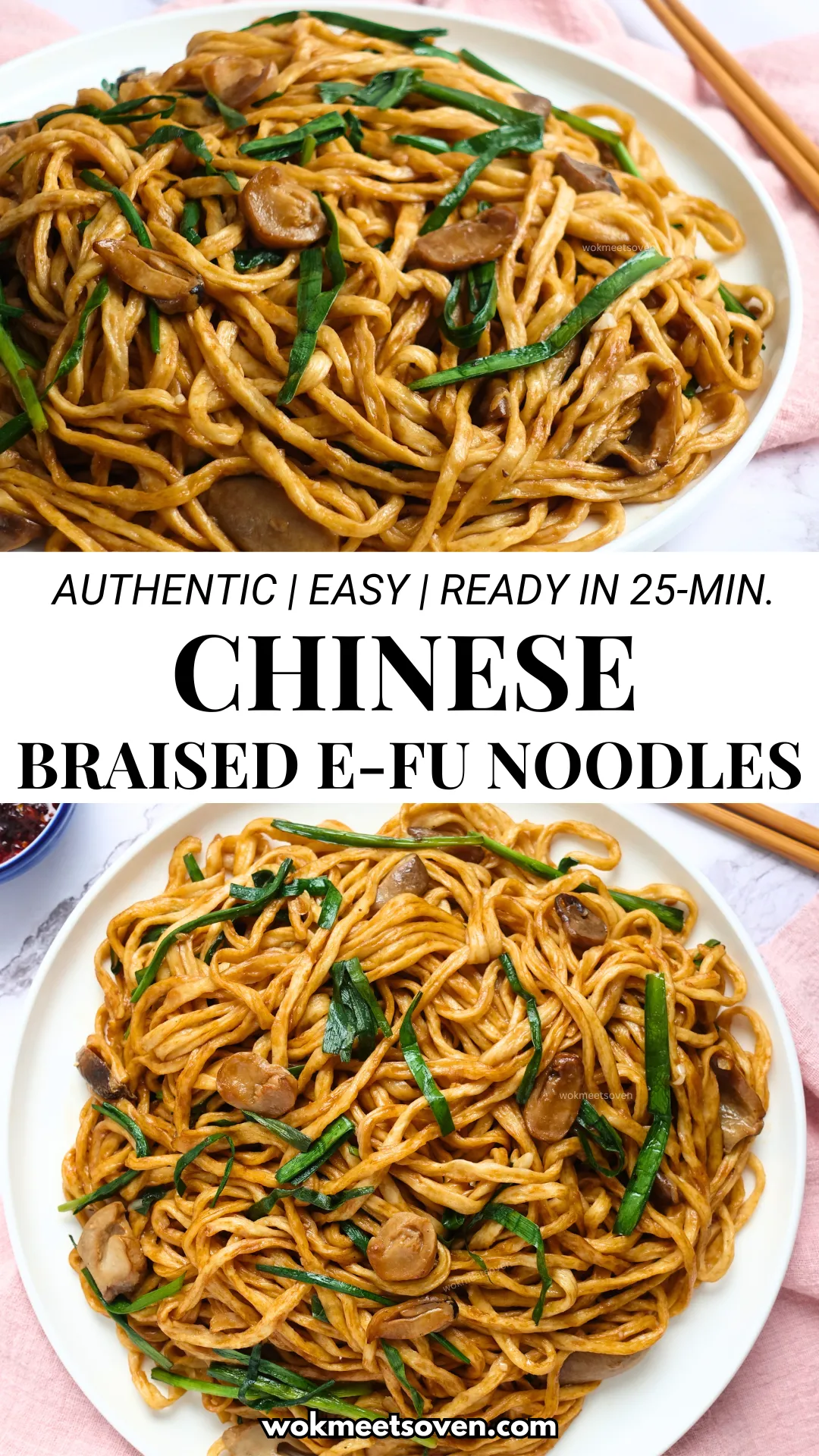 Simple easy flavorful noodle dish packed with rich umami flavor that symbolizes long life, this braised e-fu (yee mein) noodles with mushroom recipe will soon become a family favorite.