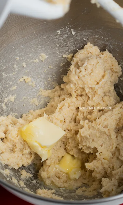 Now continue kneading the dough for 3-4 minutes then add in your room temperature butter.