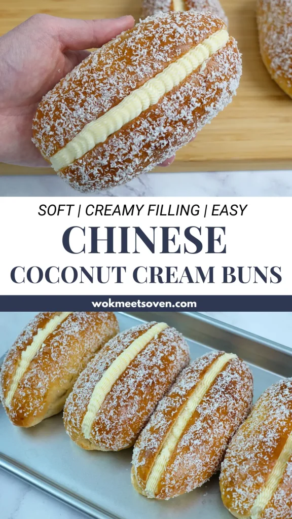 Soft and fluffy milk bread stuffed to the brim with a creamy buttercream filling that’s rich and velvety smooth and topped with sprinkles of coconut flakes. You’re gonna love this Chinese coconut cream bun recipe.
