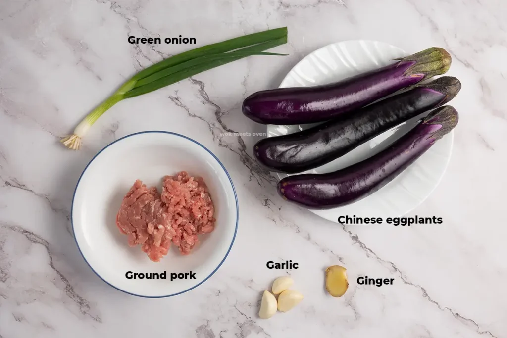 Here’s what you’ll need to make Chinese spicy eggplant with ground pork: