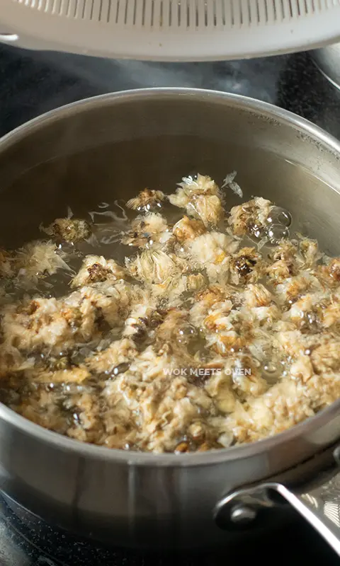 Dried Chrysanthemum Flowers: You can pick up some dried chrysanthemum flowers at most Asian supermarkets or Chinese herbal shops for cheap. These dried chrysanthemum flowers typically need to be washed, and strained prior to using.