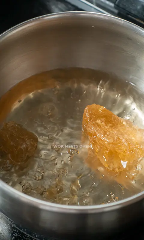 - Remove the pot from the stovetop once all of the rock sugar has dissolved.