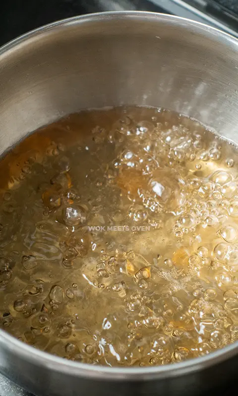 Note: If you’d like the sugar syrup to be more thicker and darker, you can continue cooking the sugar syrup until it reaches the desired thickness.