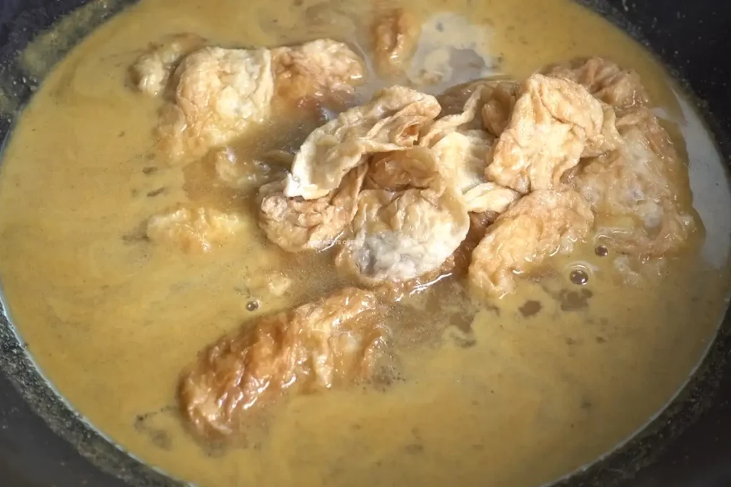 Chinese curry gluten puffs also known as Chinese curry seitan or 咖哩齋 in Cantonese is a famous Chinese vegetarian dish composed of wheat gluten that has been fried in hot oil that is later blanched in hot water to soften up the gluten puffs as well as to expel out the excess oil.