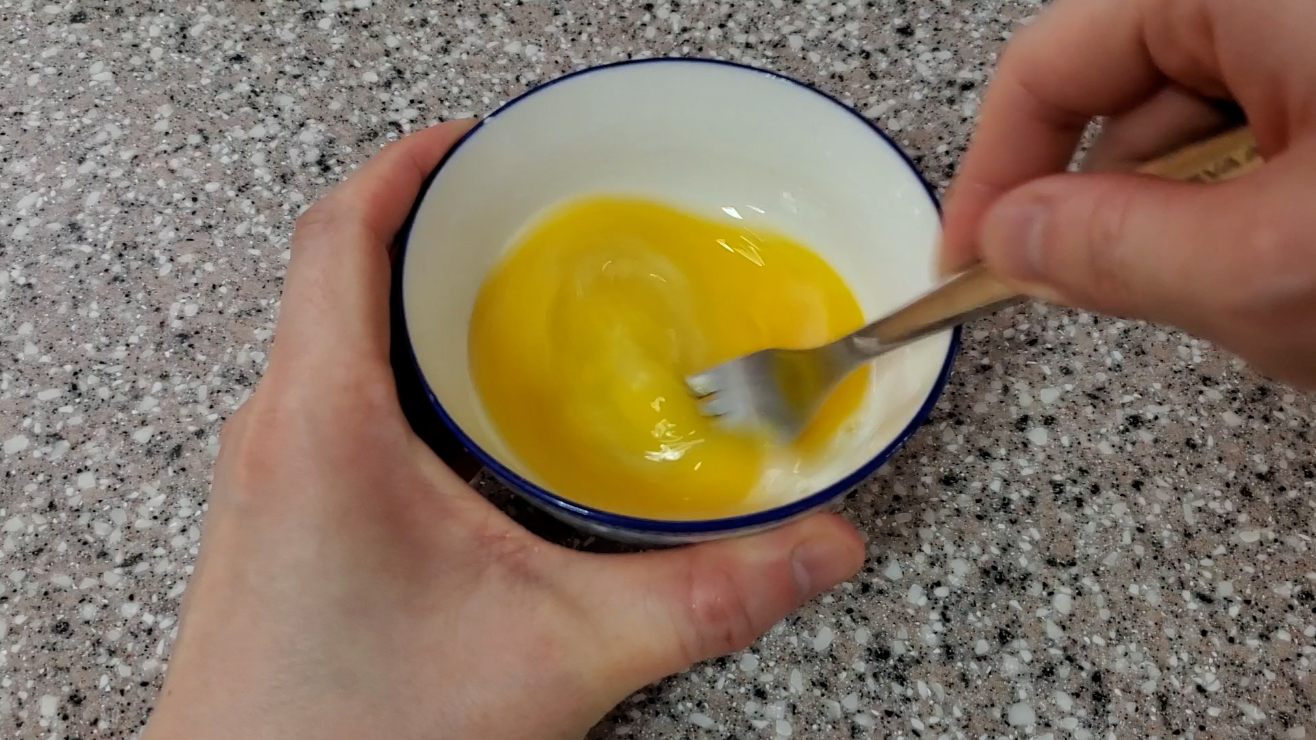 - While the buns are proofing, prepare an egg wash by combining 1 egg with a splash of milk. Whisk the eggs and milk together until everything is well mixed together.