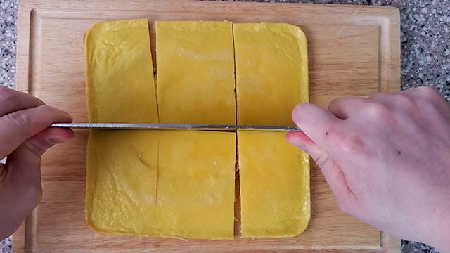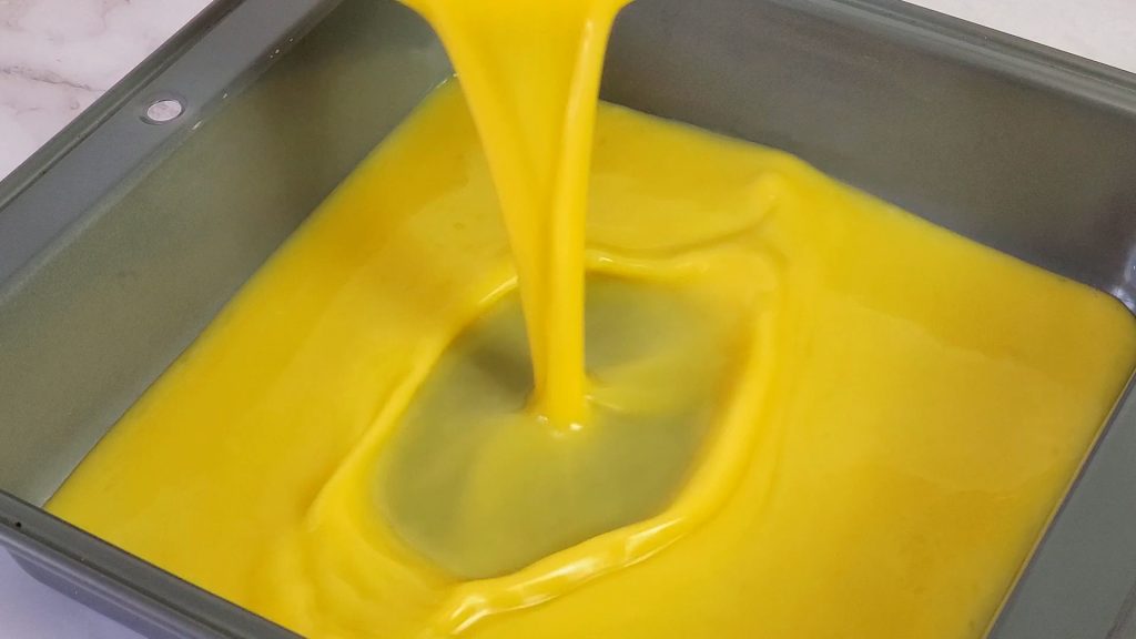 - Now pour the egg mixture onto a square baking pan and bake the eggs for about 25-30 minutes until the eggs are cooked.