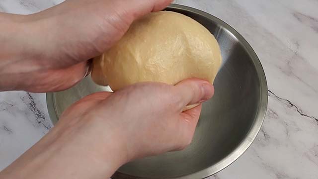 Add some oil to your hands, then shape the dough into a round ball using your hands.
