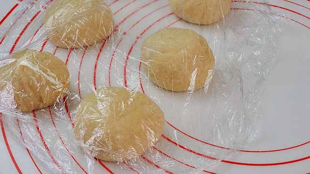 - Then shape each piece into a round ball and cover it with a towel or plastic wrap to prevent it from drying.