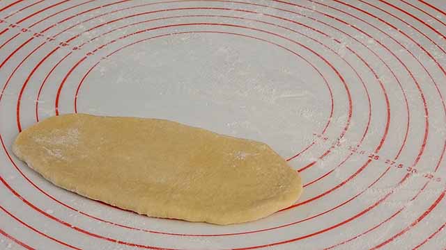 - After 15 minutes, grab 1 piece of the dough and roll it out into a long rectangular shape.