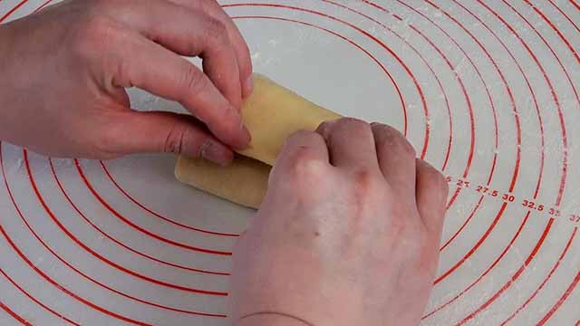 - Pinch the ends of the dough to seal it and flip the bun over.