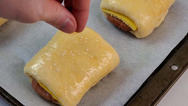 Then sprinkle some sesame seeds on top of the buns and bake the buns at 350°F (180°C) for 15-16 minutes until the top is browned.