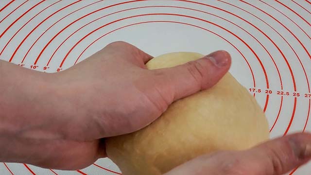 - Then shape each piece into a round ball and cover it with a towel or plastic wrap to prevent it from drying.