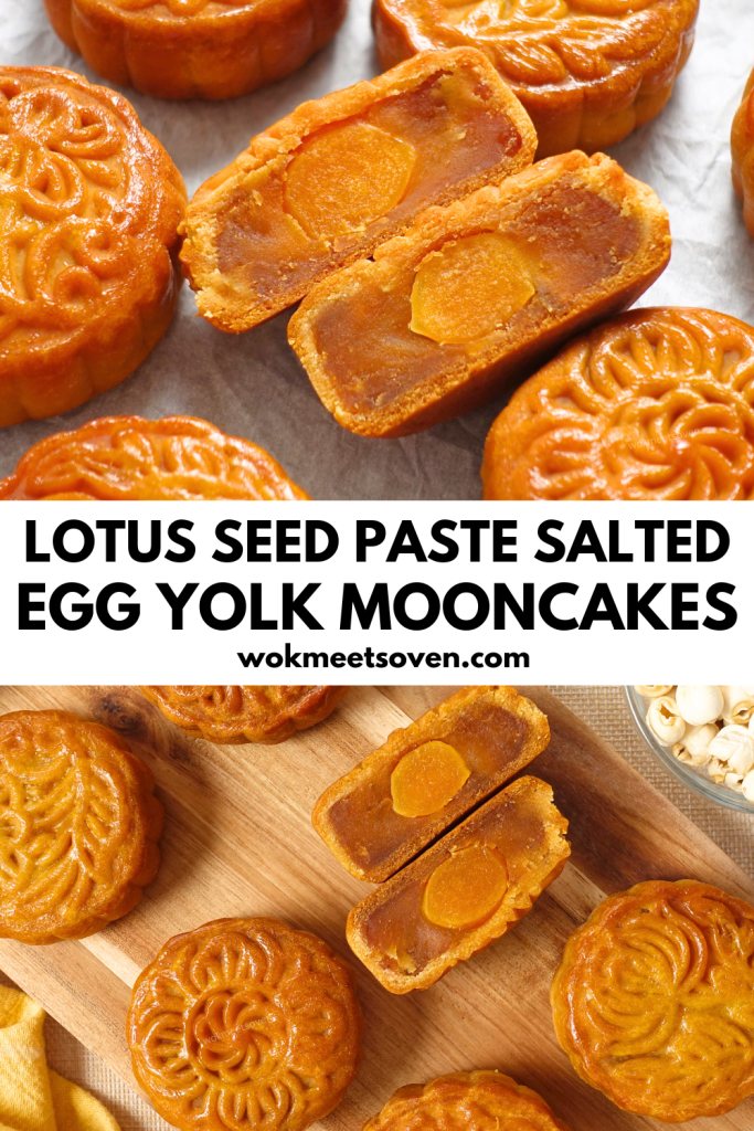 Indulge in some lotus seed paste salted egg yolk mooncakes this Mid-Autumn Festival. These mooncakes are rich, moist, and fragrant with a sweet and savory center. Once you learn how to make this classic pastry, you’ll never want to buy mooncakes again!