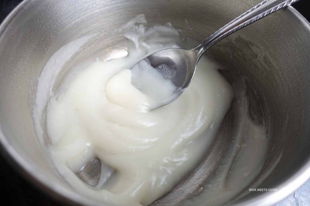 Remove it from the stove, cover it with plastic wrap and store in the fridge for at least 20 minutes to allow the Tangzhong to cool down.