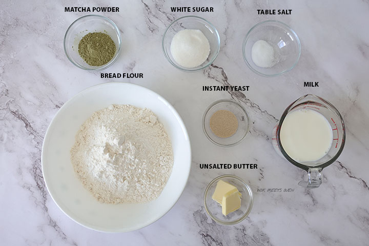 Here’s a list of ingredients of what you’ll need to make this green tea bread recipe and how to make matcha bread.