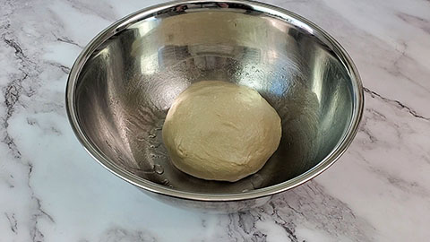 Shape it into a round ball and then weigh out the dough.