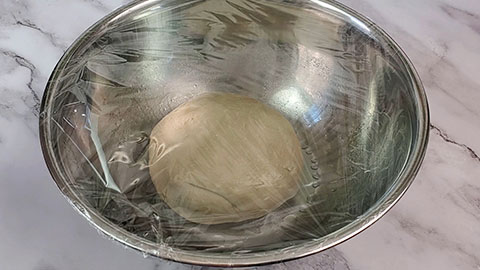 - Now cover the two pieces of dough with plastic wrap or a towel and let it rest for 20 minutes.