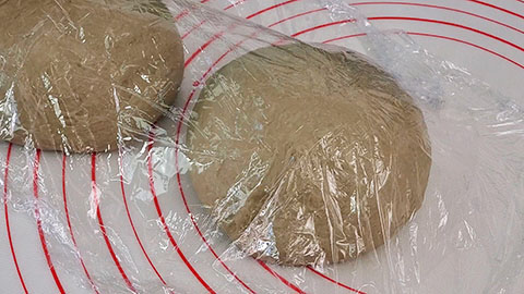 Now cover the two pieces of dough with plastic wrap or a towel and let it rest for 20 minutes.