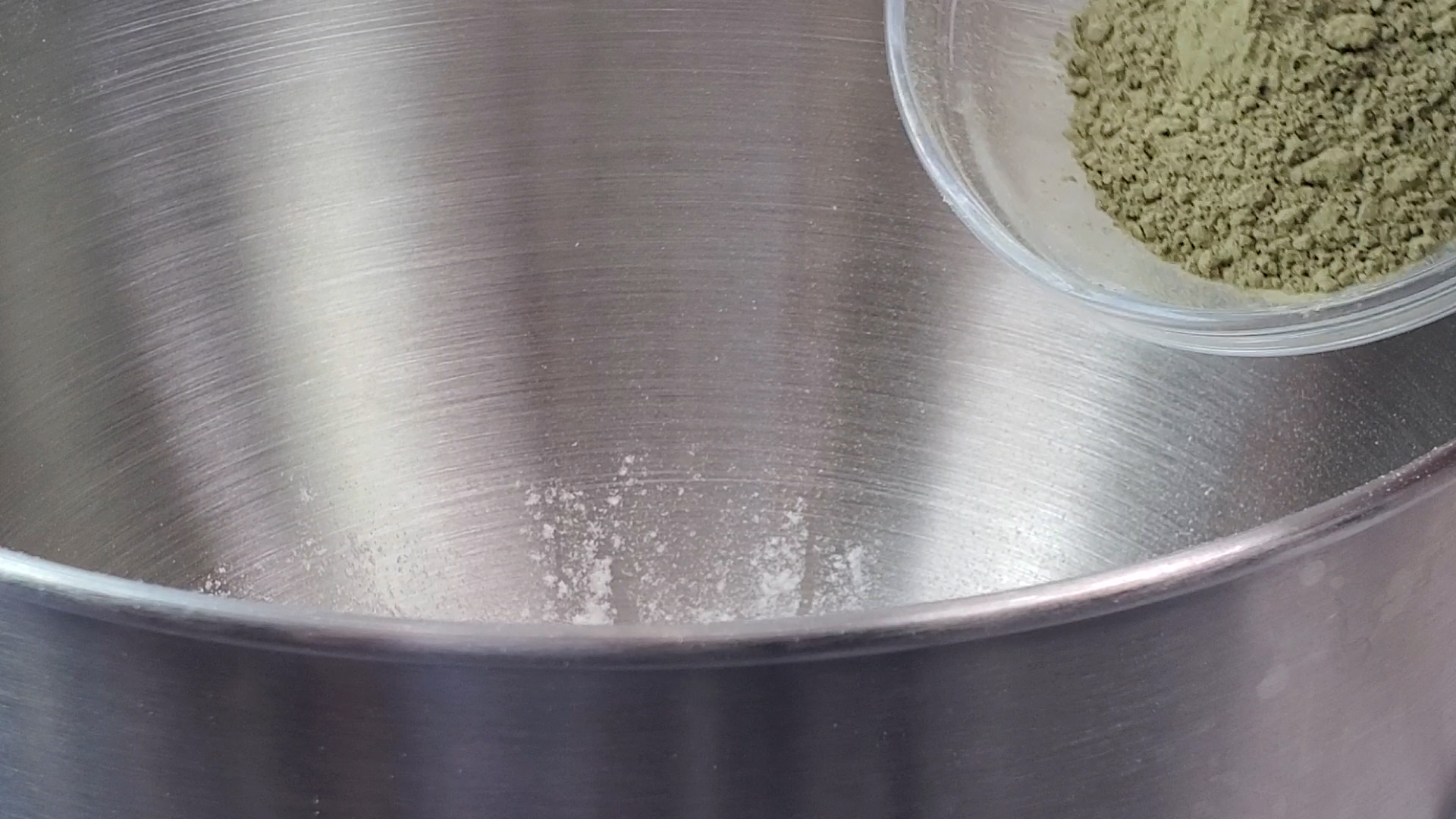 - Next, in a large mixing bowl, add in your bread flour, sugar, salt, instant yeast, matcha powder, and the Tangzhong from earlier.