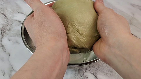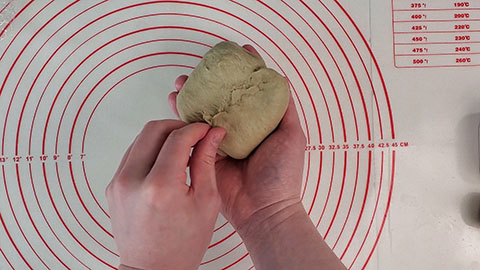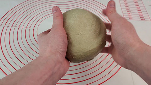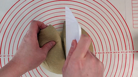 Shape it into a round ball and then weigh out the dough.
