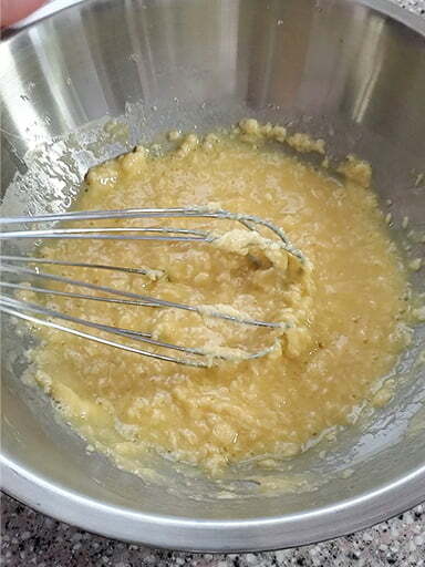 Pour the mixture onto a cake mold lined with parchment paper. I’m using a 9″ x 5″ cake mold in the picture.