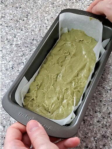 - Pour the mixture onto a cake mold lined with parchment paper. Iโm using a 9โณ x 5โณ cake mold in the picture.