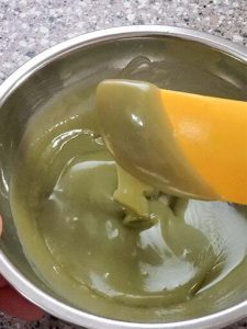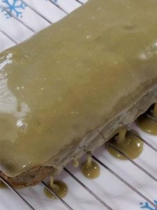 Pour the glaze over the Matcha pound cake when it’s finished baking.