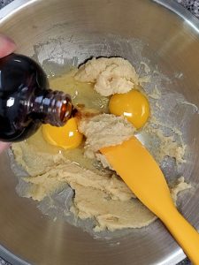 - Then add in 2 eggs, your sour cream, and vanilla extract.