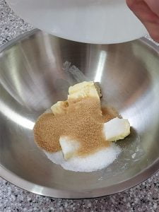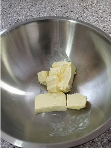 For the glaze, we will melt the white chocolate over a water bath (bowl filled with chocolate on top of a sauce pan filled with hot water). If you’re using a chocolate bar you will need to chop up the chocolate into small pieces. You can omit this step if you’re using white chocolate chips.