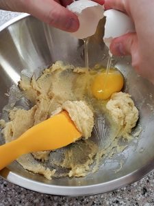 Then add in 2 eggs, your sour cream, and vanilla extract.