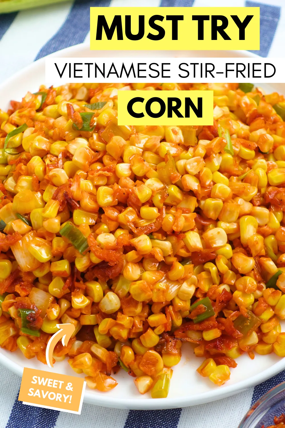 - If you don’t mind a little heat, then drizzle some sweet chili sauce on top of the corn stir-fry when serving it. It’ll give some nice sweet and slightly spicy flavor to the dish just like how they serve them in Vietnam on the streets.