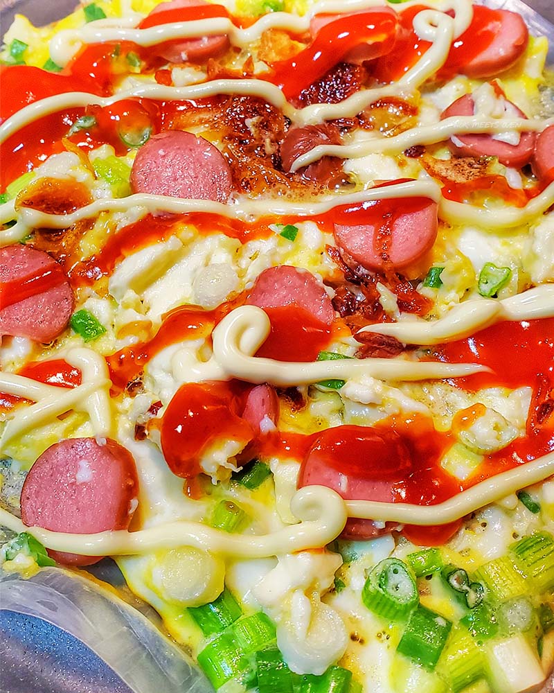 Toppings: small chunks of ham works well as a substitute for the hotdogs and minced pork. You can also substitute ground chicken/beef for the ground pork as well.